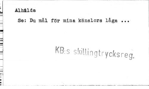 //// Alhilda //// = Se: Du mål för mina känslors låga ... //// i KB:S skillingtrycksrei ////