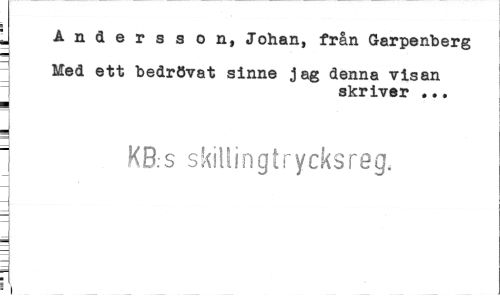//// I Andersson, Johan, från Garpenberg //// Med ett bedrövat sinne jag denna visan = skriver ... //// KB.s skiUin g t rycks reg. ////