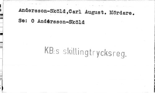 //// Andersson-Sköia,Carl August. Mördare. //// B //// " Se: O Andårsson-Sköia //// H //// KB.s skillingtrycksreg. ////
