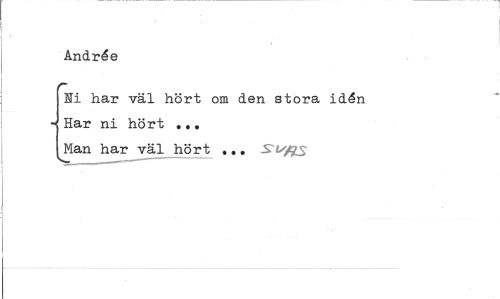 //// Andrée f~ //// Hi har väl hört om den stora idén - Har ni hört ... Man har väl hört ... //// v___—- ////