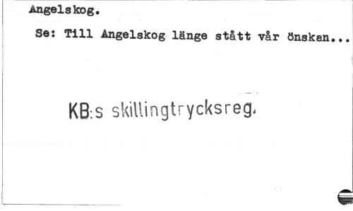 //// Ängelskog. //// Se: Till Angelskog länge stått vår önskan... //// KB.s skillingtrycksreg. //// ___ ////