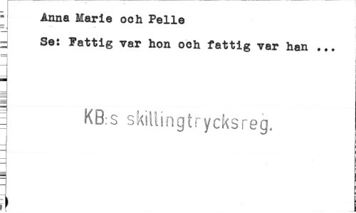 //// Anna Marie och Pelle = Se: Fattig var hon och fattig var han ... //// = KB s skillingtrycksreg. ////