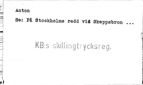//// _ Anton //// I Se: På Stockholms redd vit Skeppsbron ... //// " i //// ~ ¦ i //// | KB.s skilling t rycks reg. //// p> ////