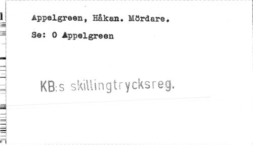 //// Ij Appelgreen, Håkan. Mördare. = Se: O Appelgreen //// H //// = KB:s skillingtrycksreg. //// n ////