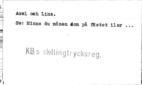 //// I //// 'I //// d Axel ocli Lina. //// Se: Minns du månen iom på fgstet ilar ... //// g //// 3 KB.s skillingtrycksreg. ////