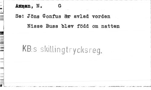 //// Åsman, K. G //// I Se: Jöns Oonftis är avlad vorden //// Nisse Buss "blev född om natten //// s //// t KB:s skillingtrycksreg. ////