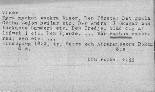 //// Visor //// Fyra mycket vackra Wisor, Ler. Första, Det gamla Gctha Lej on hwi lar etc. TVr Andra: I Skogar och täckaete Lund er1 etc. Den Tredje, Glad dig af lifwet i etc. Der. Fjerde. ... V/år Bachus ca a ge-ras; a en e t c. ... //// Ljr.kÖLing 1622, tr. Petrf och Abrahams sons Bok te 6 3, 8.o //// UUB Folk v. 4;33 //// ¦¦ »• '' ». •• •• . • - •" •- . ' - \ .. ¦ . ' . • . • ¦ - ¦..•;¦ ¦¦¦..¦ '• * ////
