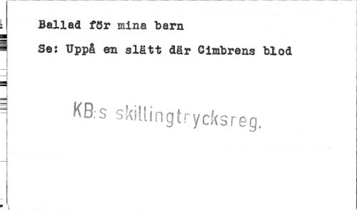 //// Ballad för mina "barn I Se: Uppå en slätt där Cimbrens blod //// 3 KB:s skillingtrycksreg, ////