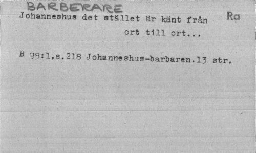 //// Johanneshus det stället är känt från //// ort till ort... //// B 98:1,9.218 Johanneshua-barbaren.13 str. ////