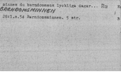 //// minnes du barndommens lyckliga dagar... Ra E 28:1.3.54 Barndomsminnen. 5 str. B ////