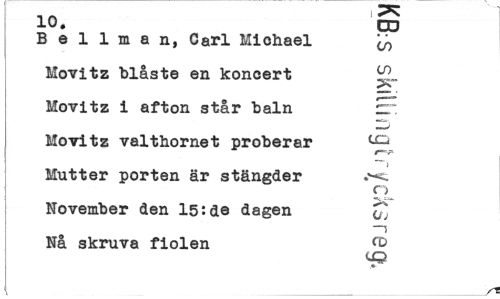 //// 1 ^ //// 10. CO //// B e 1 1 m a n, Carl Michael ^ //// Movitz blåste en koncert Movitz i afton står baln ZT. //// Movitz valthornet proberar ^ //// ) //// Mutter porten är stängder //// o //// November den 15:de dagen oj //// —i //// Nå skruva fiolen //// ( / ////