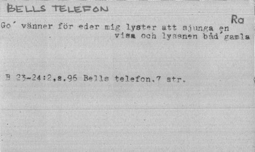 //// teuus //// Ka //// (Jo' vänner för eder mig lyster att sjunga en //// visa och lyssn^n båd gamla //// B 2?-24:?ts.9S Bells telefon.7 str. ////