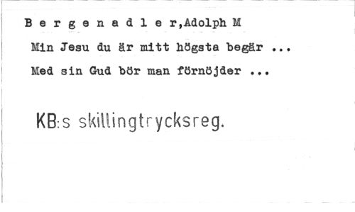 //// Bergenadle r»Adolph M Min Jesu du är mitt högsta begär ... Med sin Gud bör man förnöjder ... //// KB.s skillingtrycksreg. ////