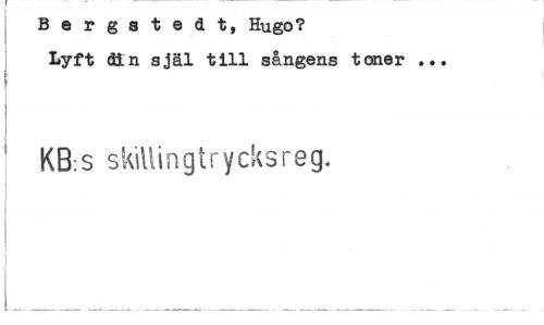 //// Bergsteat, Hugo? Lyft cöLn själ till sångens toner ... //// KB:S skillingtrycksreg. ////