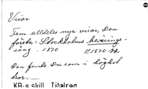 //// Visor /// Fem alldeles nya visor, Den första: Stockholms beväringssång. 1870 E1870 Den femte: Du som i höghet tror ... //// KB:s skill Titelreg.