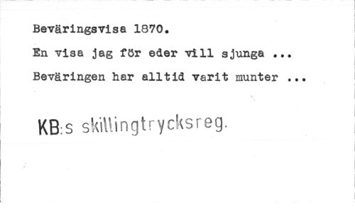 //// Beväringsvisa 1870. //// En visa jag för eder vill sjunga ... //// Beväringen har alltid varit munter ... //// KB:S s killin gt rycks re g, ////