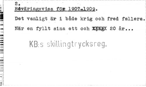 //// Zé //// Baväringsvise föe 1907-.1909. j Det vanligt är i "både krig och fred fallera, n När en fyllt sina ett och XpiiX 20 år... //// I KB:s skiliingtrycksreg. //// 4 h ////