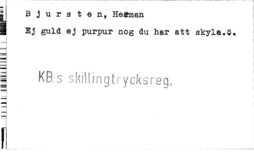 //// | Bjursten, Heataan //// Ej guld ej purpur nog du har att skyla.ö. //// J — //// | //// | KB.s skillingtrycksreg. //// F ////