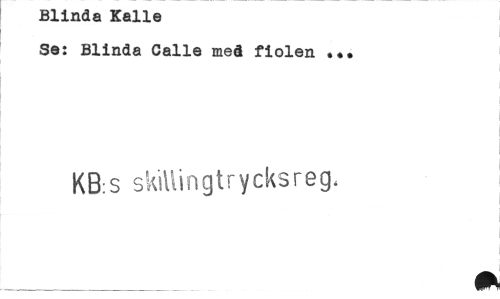 //// Blinda Kalle //// Se: Blinda Calle med fiolen . •• //// KB:S skiUingtrycksreg. ////