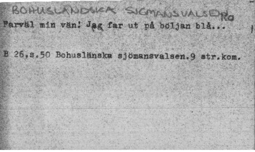//// Farväl min vän! J££ far ut på böljan blå..." . j B 26,s»50 Bohuslänska sjömansvals»n.9 atr.kom. //// IB* . " " 1 ' ////