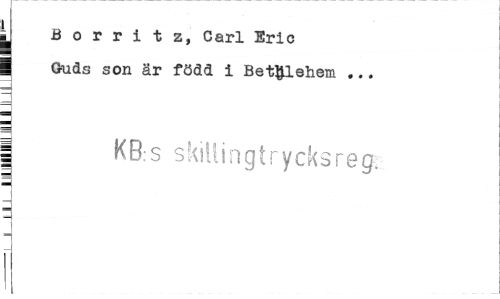 //// L Borritz, Carl Eric | Guds son är född i Bet&Lehem ... //// H ^ //// m //// H //// I KB:s skillingtrycksrepi //// 3 H //// a //// J //// —i //// -4 ////