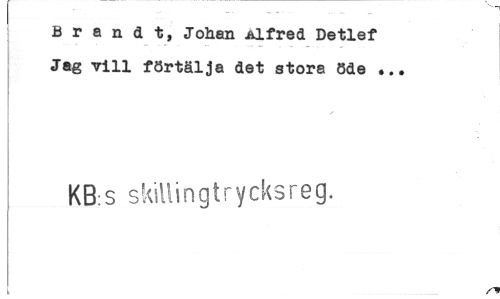 //// Brand t, Johan Alfred Detlef Jag vill förtälja det stora öde ... //// KB:S skillingtrycksreg. ////
