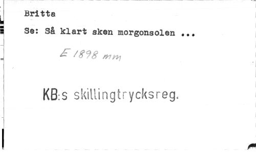 //// Britta //// i //// i Se: Så klart sken morgonsolen ... //// 1 //// 1 , //// i //// KB:S skillingtrycksreg. //// i ////