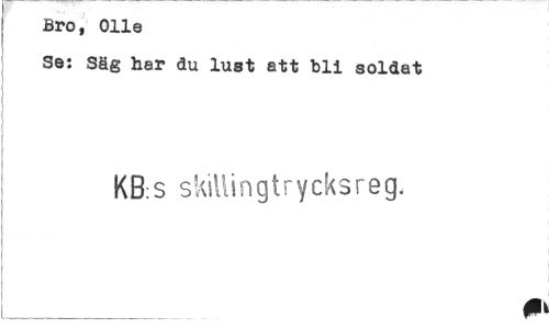 //// Bro, Olle //// Se: Säg har du lust att bli soldat //// KB:S skiUingtrycksreg- //// ___ # ////