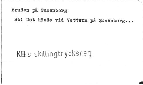 //// j Bruden på Susenborg //// Sei Det Mnde vid Vett«rn på gusenborg... //// , KB:S skiliingtrycksreg. ////
