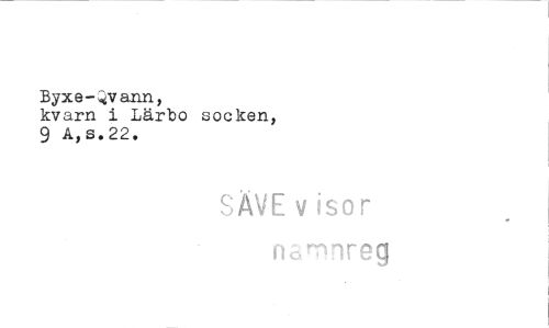 //// Byxe-Qvann, //// kvarn i Lärbo socken, //// 9 A,s.22. //// SÄVE visor //// n rvireg ////