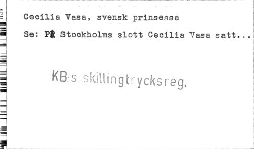 //// : Cecilia Vasa, svensk prinsessa //// ¦ Se: Pj Stockholms slott Cecilia Vasa satt... //// _ //// g KB.-s skillingtrycksreg, //// i //// H //// q //// ¦ //// i ___ ////
