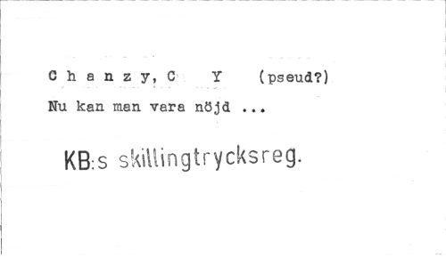 //// Chanzy, C Y (pseud?) Nu kan man vara nöjd ... //// KB:S skillingtrycksreg. ////