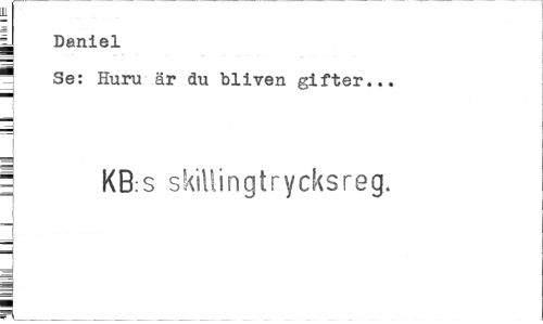 //// 1 //// y Daniel //// % //// ? Se: Huru är du bliven gifter... //// J //// i //// 1 KB:s skillingtrycksreg. //// m ////