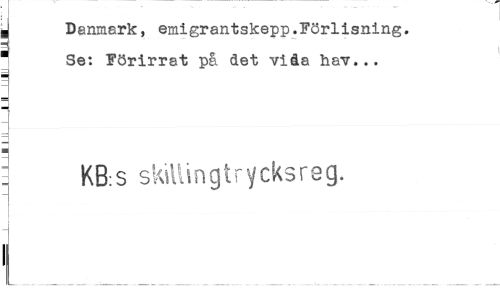//// , Danmark, emigrantskepp.Förlisning. //// 1 Se: Förirrat på det viåa hav... //// - //// i KB:s skillingtrycksreg. i| ////