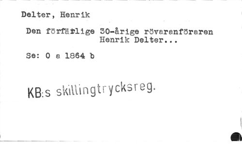 //// Delter, Henrik //// Den förfärlige 50-årige rövaranföraren Henrik Delter... //// Se: 0 a 1864 b //// KB.s sktllingi rycks reg. //// 3 ////