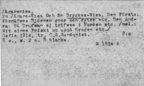 //// Jä-tarevlea, //// Er Jä^re-Wiaa Och Kr? Dryekes-Wlsa. Ber Fcrsta; P^r^äfw-3 Björnen or '"Wh 'm^tc. T>en Andra: M Brufwar ej trifwes i Kqrden etc, /mel.: Mit sinne Frjakt up uaoå Krogen etc,/ Oefle. 1834^ tr. C .3undq*?lst. 8:0 //// 8 s., 9. 2 c. B blanka. - //// £ 1314 d //// ¦ ' ¦ - ' .v;;.; . • • , , ¦ ' :" -.V •>.¦;¦. ' . ..'. ¦ * //// • : •. ¦ •¦. •• _> ¦ ¦ ¦¦¦¦; '•' * ' " vi,' x ' , > '». ¦>" " //// ' , J . _' _ ' 1 V,' v ' "" " - ' - ^ " //// ' ¦:¦* ¦ .'.' r.' . '•. ••/_ ' . "; ¦ -V- • -w'' w • ; //// /"V ... ;•.¦.• - - ' . - ' 'J " _ >„ " ////