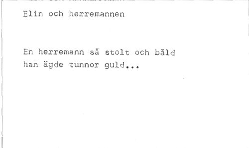 //// Elin och herremannen //// En herremann sä stolt och bäld han ägde tunnor guld... ////