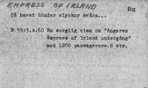 //// gtfPXBSS OF tXJU9H& Ra //// På havet hände r olyckor sv åra... 1 //// B 59:3.8.60 En sorglig visa om "ångaren Empress of Irland undergång" med 1200 passagerare.8 str. ////