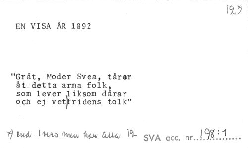 //// EN VISA AR 1392 //// "Gråt, Moder Svea, tårar åt detta arma folk, som lever liksom dårar och ej vetlfridens tolk" //// rf 1\aaj i "has o-vu^a wt ojmj ''v ccc> nr ////