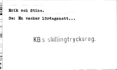//// 1 Erik ock Stina. //// Se: En vacker lördagsnatt... //// - KB:S skillingtrycksreg. ////