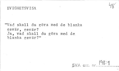 //// EVIGHETSVISA ^ //// "Vad skall du göra med de blanka gevär, jjevär? //// Ja, vad skall du göra med de blanka gevär?" //// SVA ccc. nr...!..., ////