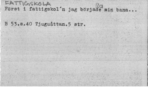 //// PATT\GySlcö tA gq _ //// Först i fattigslcol n jag började min bana... //// ¦ B 53.S.40 Tt1uguåttan.5 str. ////