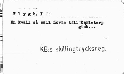 //// ¦ ! 1 y g h, I . ' //// En kväll så säll Lovis till Kqrlstorp //// gick... //// KB:S skillingtrycksreg. //// i ////