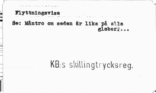 //// s Plyttningsvisa //// Se: Måntro om seaen är lika på alla //// glober i"... //// : KB:S skiUingtrycksreg. ////