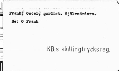 //// I //// = Frank; Oscar, gzrdist. Självmördare. Se: O Frank //// - KB.s skiliingt rycks reg. //// — //// l ////