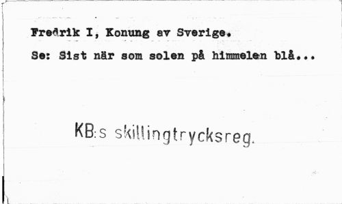 //// Fredrik I, Konung av Sverige. //// Se: Sist när som solen på himmelen blå... //// KB:s skiUingtrycksreg. //// \ ////