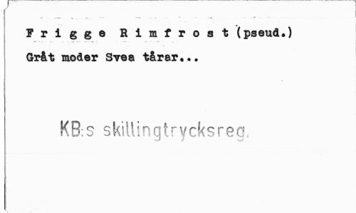 //// Frigge Rimfrost (pseud.) Gråt moder Svea tårar*.. //// KB;s skillingtrycksreg ////
