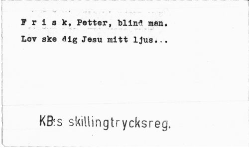 //// Frisk, Petter, blind men. Lov ske flig Jesu mitt ljus... //// KB:S skillingtrycksreg. ////