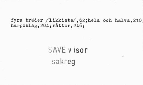 //// fyra bräder /likkista/,62;hela och halva, 210 harposlag,204j råttor,246; //// SÄVE v isor sakreg ////