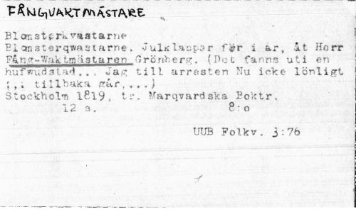 //// P £ kl U kKT ÄST f\1tz //// Blonstf-rkvaatarrif //// Bl ansterqwasiarne. Jul* lauj-or fér i ar, it Herr F4x-'-V a k tmastaren Grönberg, (Po t fanns uti en hufwud3ta«i.. , Jap- till arresten Nu icke lönligt //// tillbaka par,...) Stockholm 1819 , tr, Marqvardska Boktr, 12a. 8;o //// UtJB Folk v . j:?6 ////
